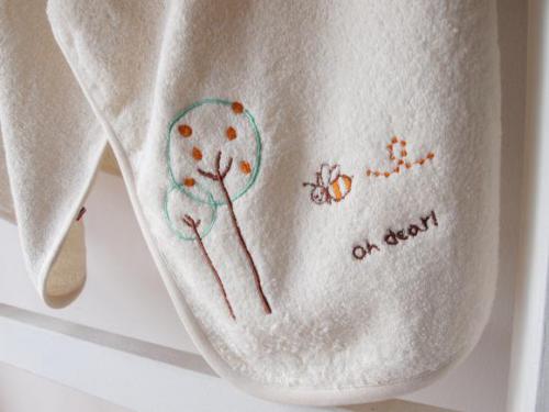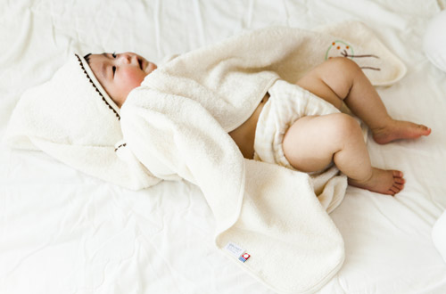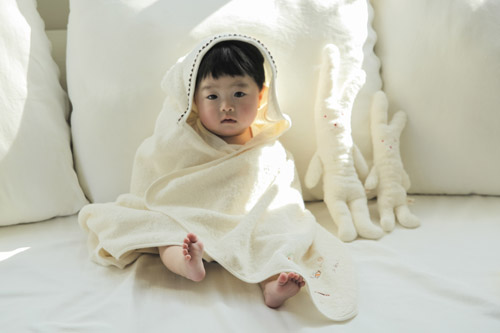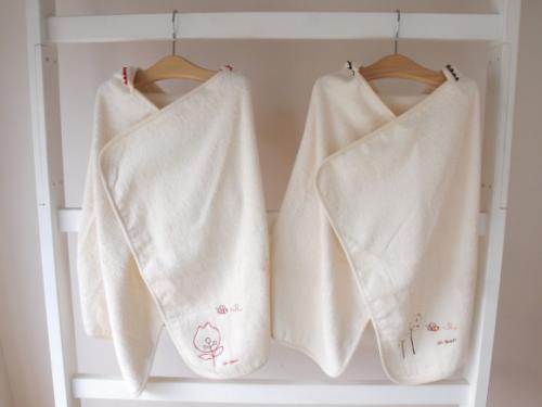 お風呂上りにフードをかぶせくるりと包み込むことができる便利なアイテムです。また、お昼寝時にもお使い頂けます。